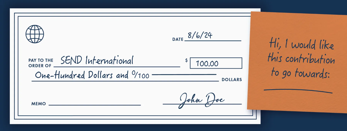 The needs of SEND International, including those of the missionaries and the ministry, are regarded as challenges to our faith for God’s work and held before Him in prayer. Therefore, all contributions, regardless of their source or designation, are to be received as from Him and used for His glory.